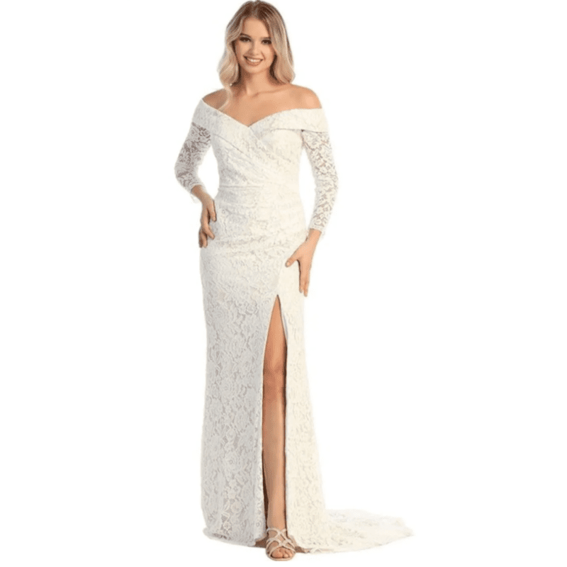 Cross V-Neck Off Shoulder Lace Gown