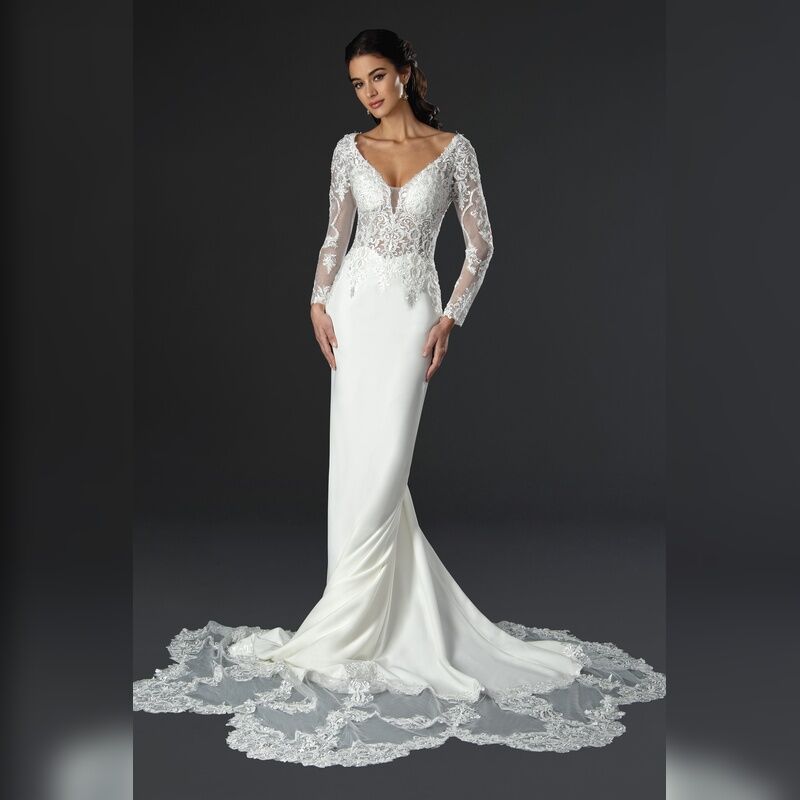 V-Neck Long Sleeve Wedding Dress