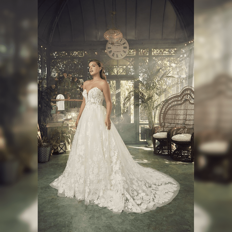 Fit & Flare Strapless Gown with Plunging Neckline