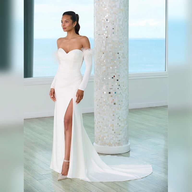 Modern Strapless Sweetheart Neckline Stretch Matte Charmeuse with Structured Bodice and Side Draped Skirt
