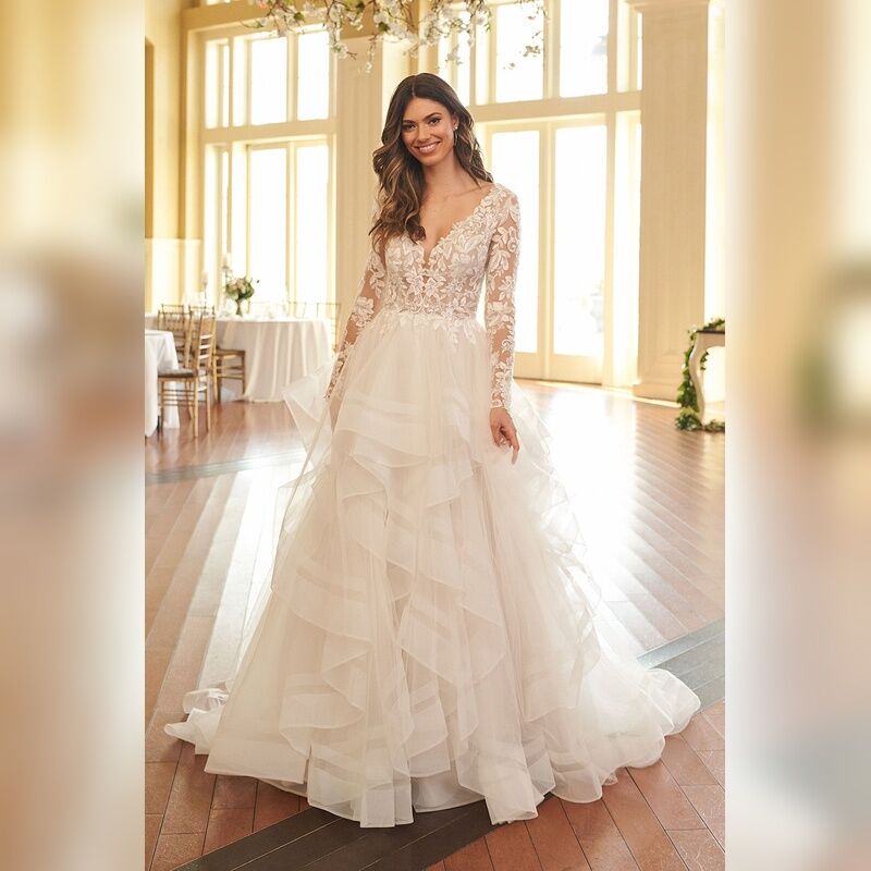 Justin Alexander Long Sleeve Ruffly Skirt Gown