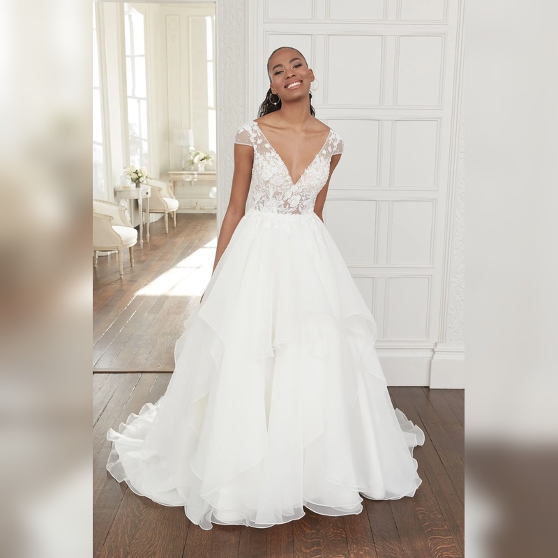 Justin Alexander Cap Sleeve Gown with Organza Ruffle Skirt
