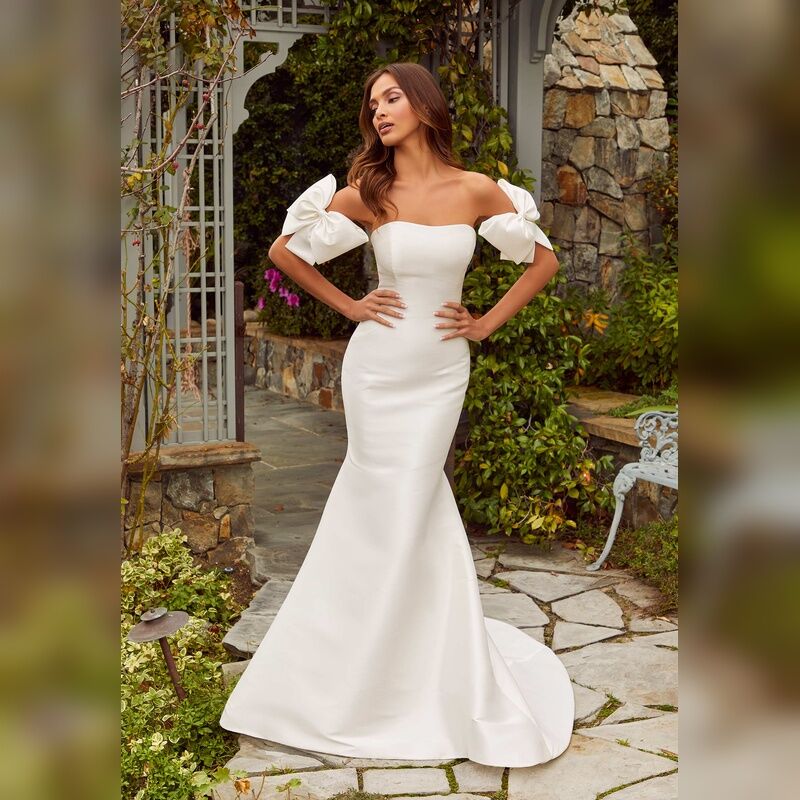 Stretch Larissa Satin, Strapless Neckline & Princess Seams