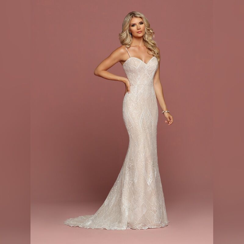 Davinci Bridal Long Fitted Embellished Wedding Dress Beaded Spaghetti Straps