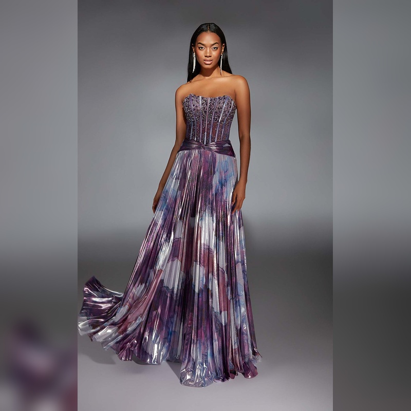 Alyce Paris Metallic Skirt Embellished Corset Dress