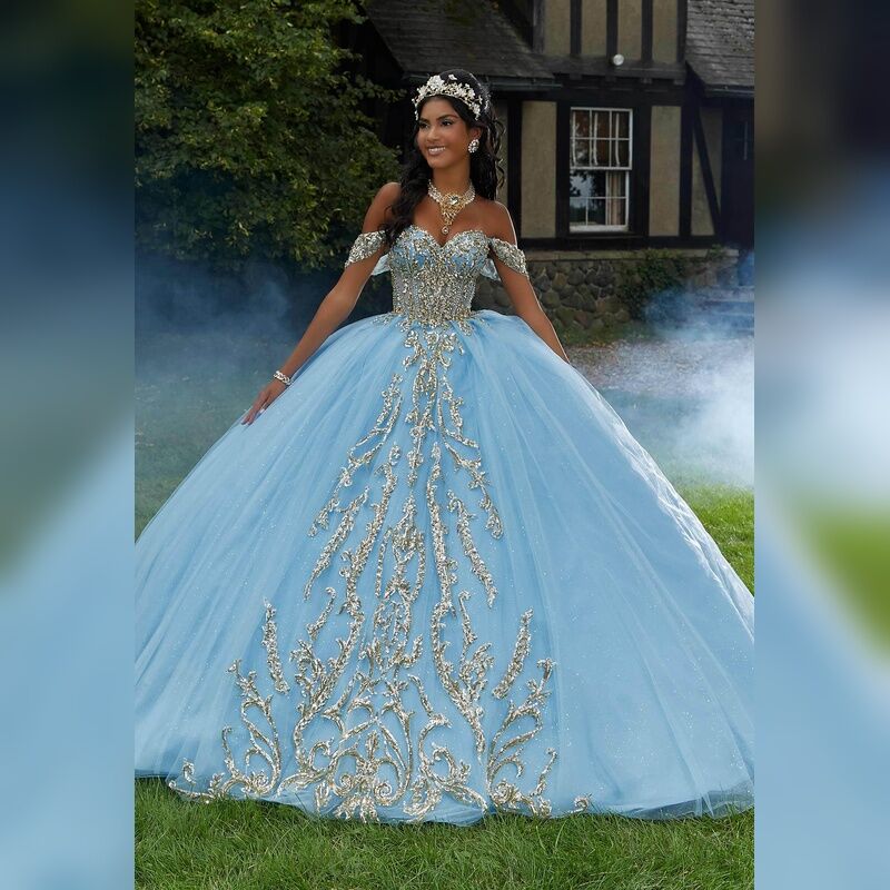 Pattern Sequin Rhinestone and Crystal Beaded Quinceanera Dress