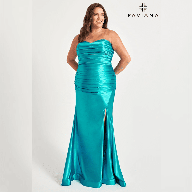 Stretch Satin Plus Size Strapless Dress With Ruching Detail