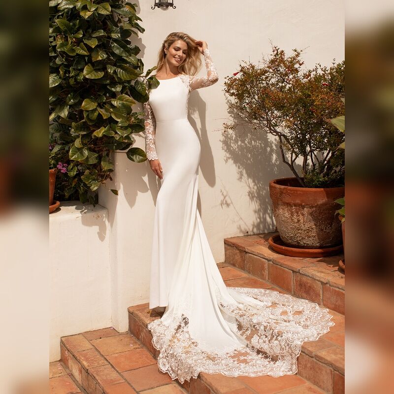 Moonlight Bridal – Illusion Long Sleeve Lace Crepe Mermaid Wedding Gown