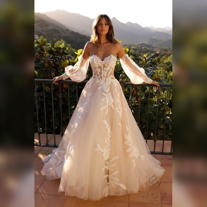 Puff Sleave Strapless Corset Gown