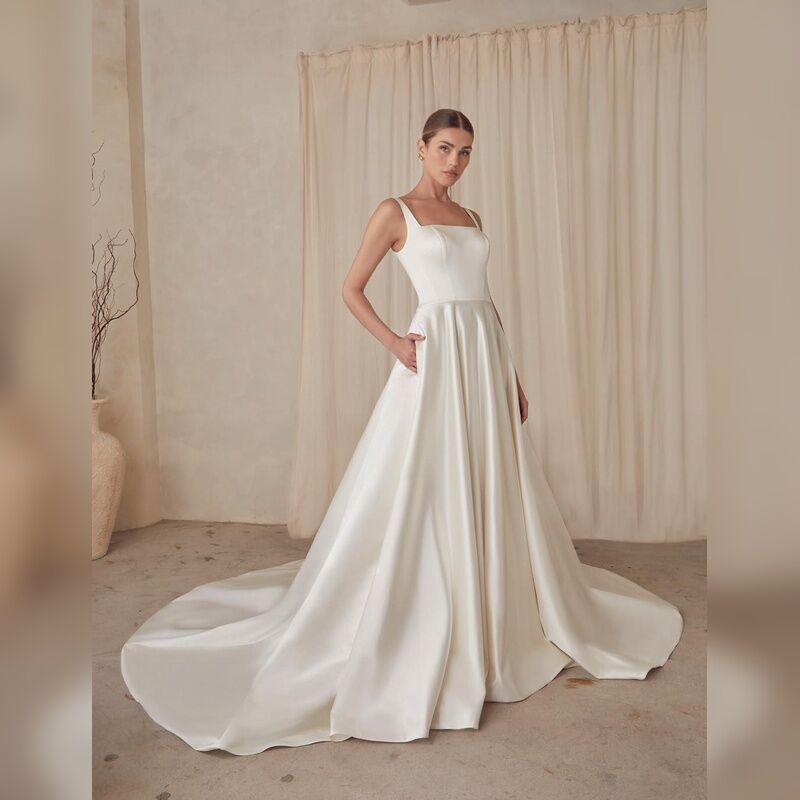 A-Line Square Neckline Gown with Sleek Satin & Lining
