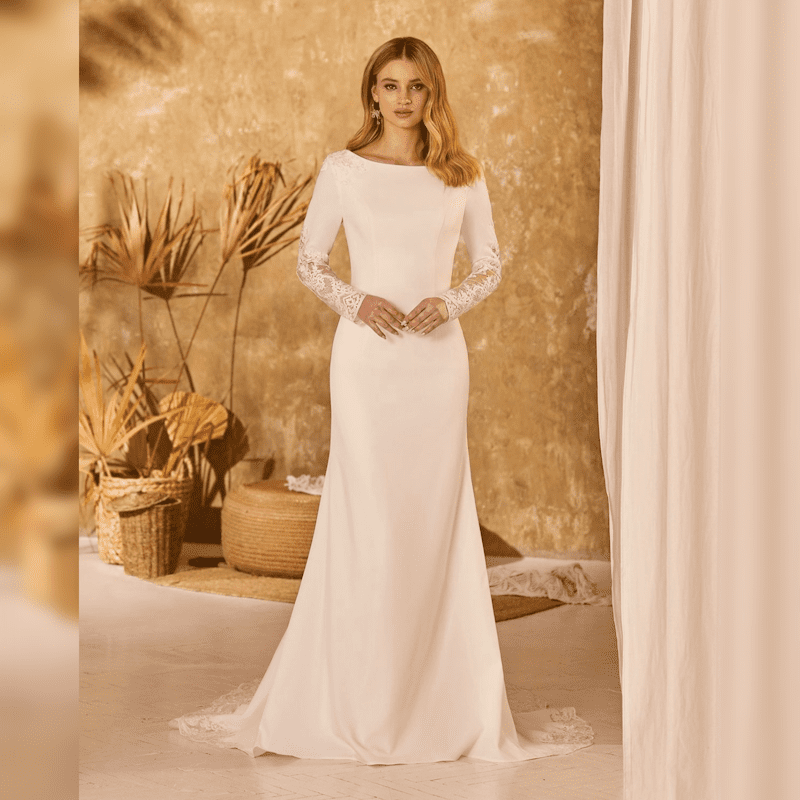 Classic Bateau Mermaid Bridal Gown with Ornate Cutout Lace Train