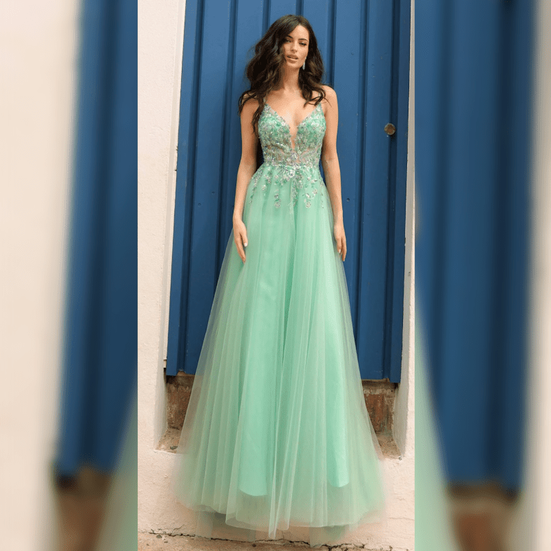 Lace Applique Sleeveless Tulle Gown