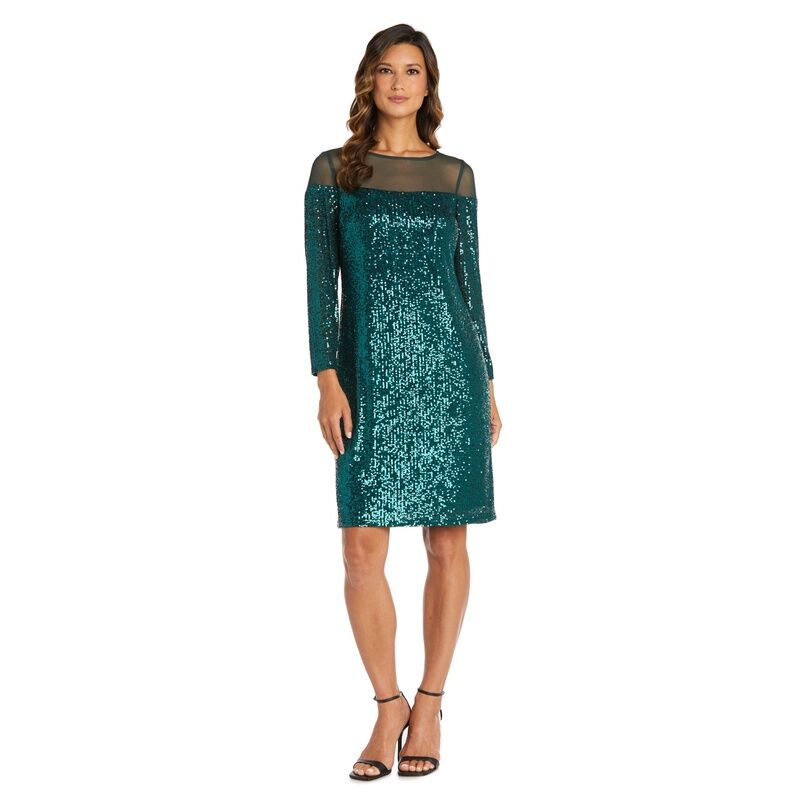 R&M Richards Sequin Dress with Illusion Bodice