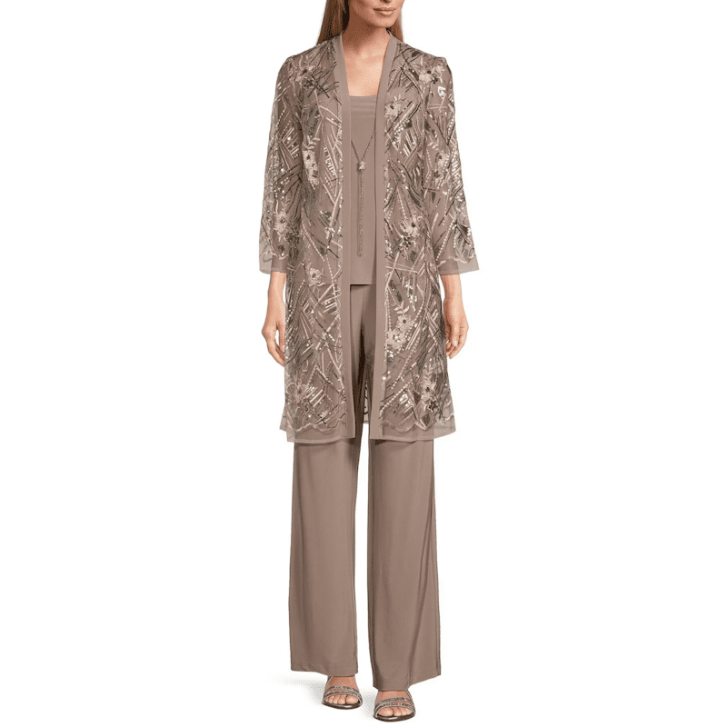 RM Richards 3pc Pant Set with Beaded Duster