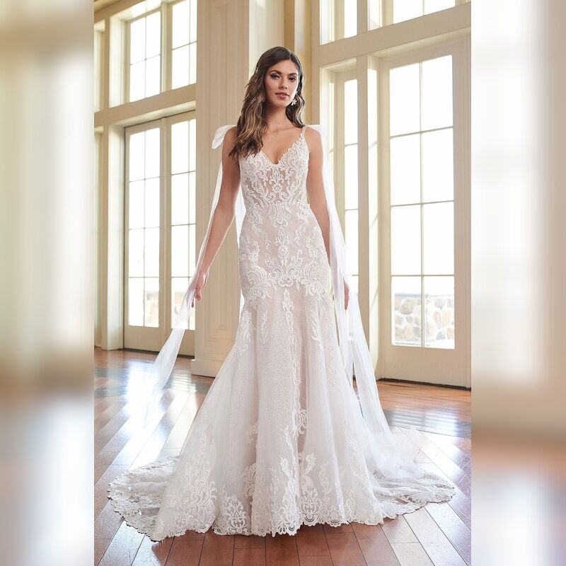 Lace Trumpet Gown with Low Back and Shoulder Bows